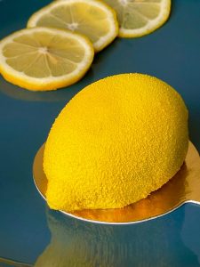 Biscuit joconde, marmelade de citron confit, crémeux citron, mousse citron